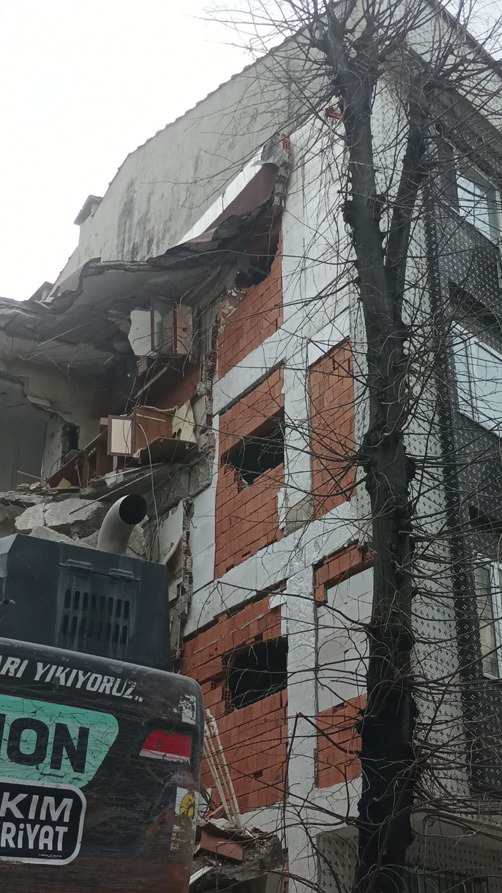 Apartmanda duvarı yıkılan Beyhan Alp, “Bodoslama girdiler. Bir kere değil, ikinci kez duvara vurdular. Gece sabaha kadar uyuyamadık. Soğukta kaldık. Baştan makasla başlasalardı bu kadar zarar olmazdı” dedi.